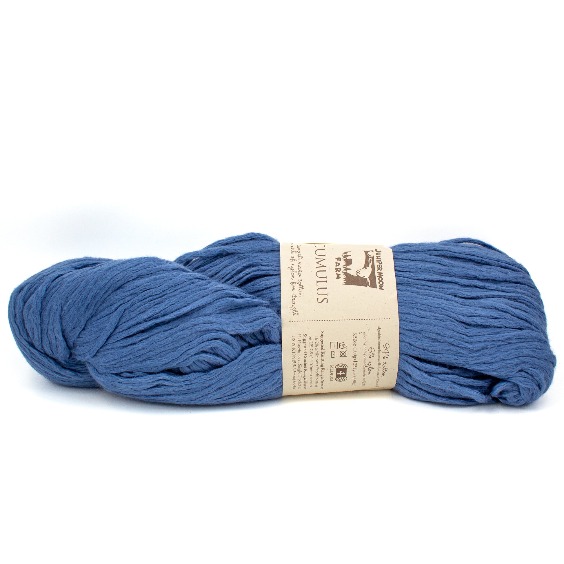 Cumulus is one of those cotton yarns that feels unexpectedly plush, with a cloud-soft texture that still stays breathable. The brushed cotton gives it that smooth, luxe hand, while the touch of nylon adds strength for garments that will last.