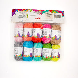 Katia Amigurumi Cotton Kits are colorful mini balls of 100% cotton that work up into crisp, detailed fabric. Perfect for tiny toys, amigurumi characters, and small accessories. Each pack gives you a coordinated range of shades, so you can mix and match without committing to full-size skeins, making it ideal for scrappy projects, faces, details, and multi-color designs.