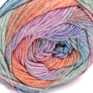 Louisa Harding Provence is a breezy cotton–viscose–linen blend that works up into lightweight, drapey fabric with subtle sheen and softly variegated color. The chainette construction keeps it breathable and comfortable for warm weather, making it a lovely choice for tops, luxe baby items, and shawls that feel easy to wear but still look polished.